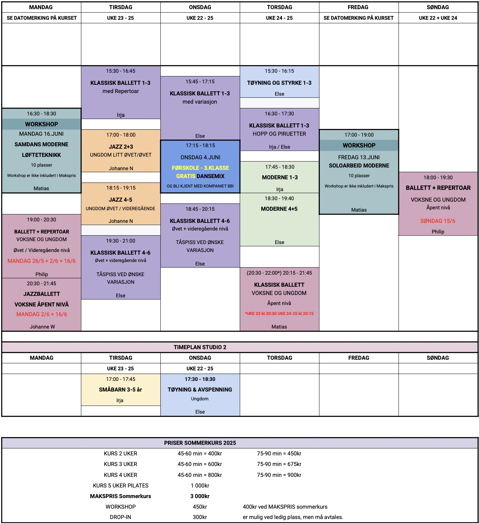 NB! Se dato/uker på planen da dette varierer fra kurs til kurs.